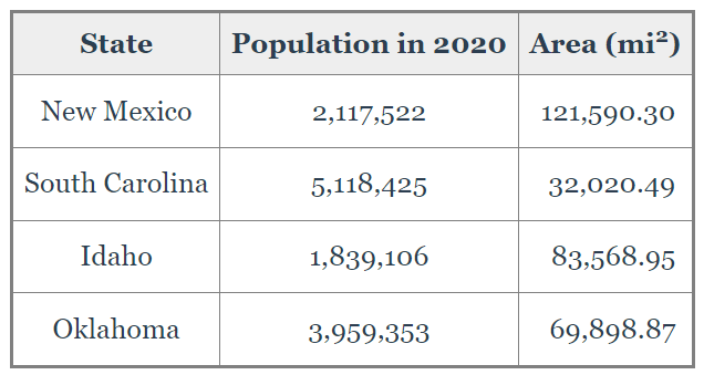 New Mexico has the smallest population density.