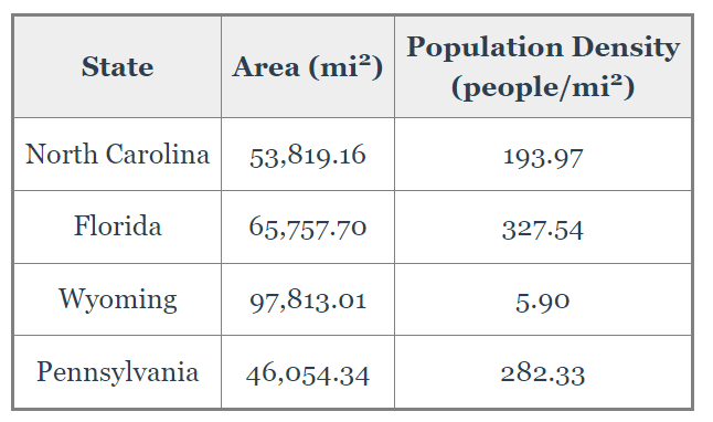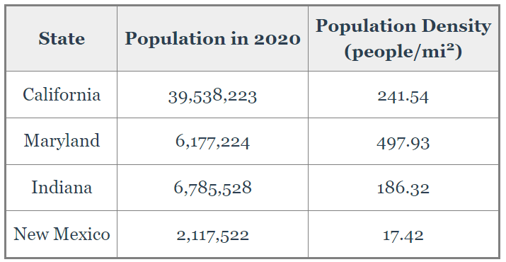 Which state has the smallest population density?