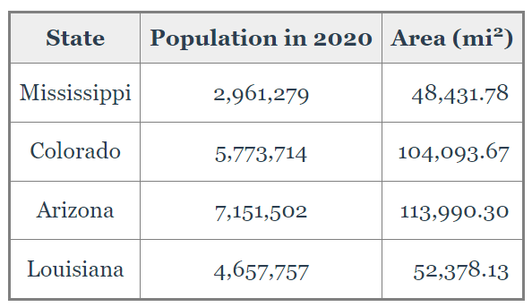 What is the population density of Mississippi?