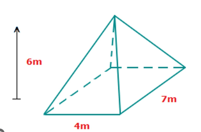 Find the volume of the rectangular pyramid with a base area of 96 square metres and a height of 12 metres.