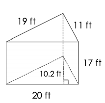 Find the volume of a triangular prism where the base and height of the triangle are 20 ft and 10.2 ft. The height of the prism is 17 ft.