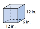 The area of a triangle with base of 6 inches and height of 12 inches.