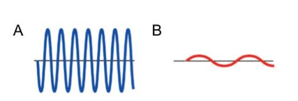 Which wave has a longer wavelength?