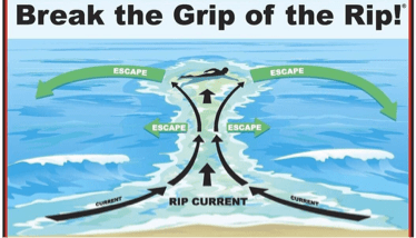 Look for an gap in the middle of breaking waves where waves are not breaking.