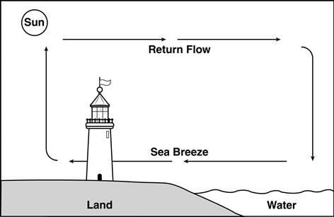 The diagram shows the movement of air.  Which factor is MOST responsible for the movement of the air shown?