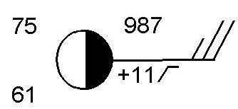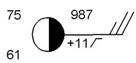 What is the wind direction for the weather station model?
