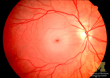Fundoscopy shows a pale fundus with a cherry-red spot.