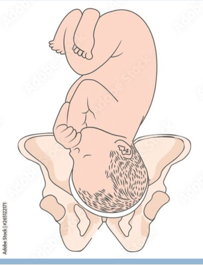 R or L side of mom's pelvis> (left) Baby's presenting part (head=Occiput) Position of presenting part to mom's spine (posterior