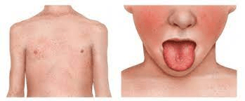 A Strawberry tongue and Sandpaper RED RASH with an abrupt onset is this