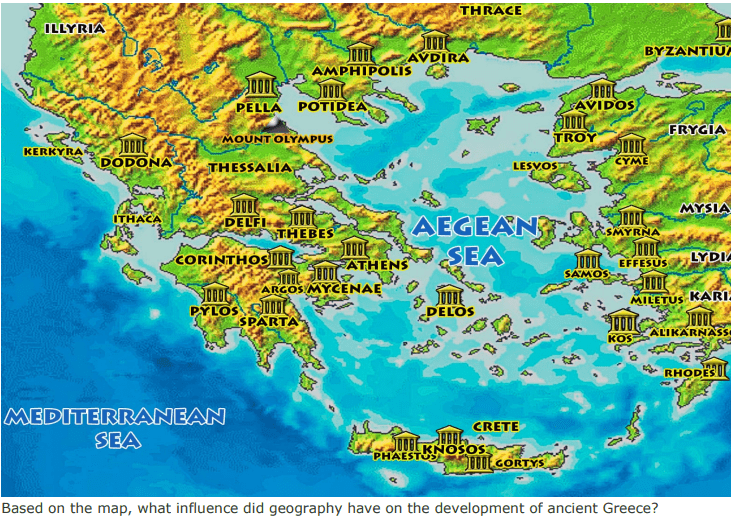 Based on the Map what influence did geography have on the development of the Ancient Greece