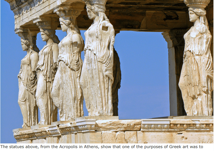The statues above from the Acropolises in Athens, show that one of th epurposes of Greek art to