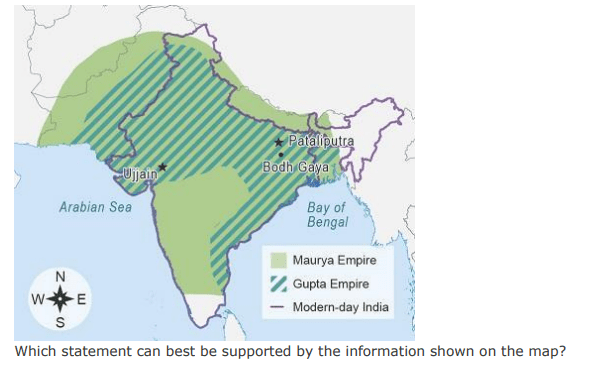B The Mauryan Empire controlled more of the Indian subcontinent than the Gupta Empire did