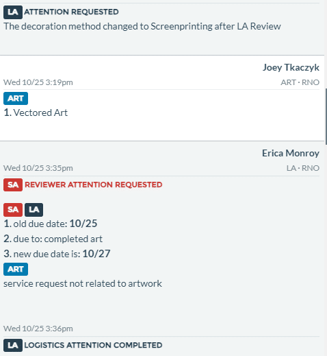 2 Requests (LA/ART/SA/BILLING attention)