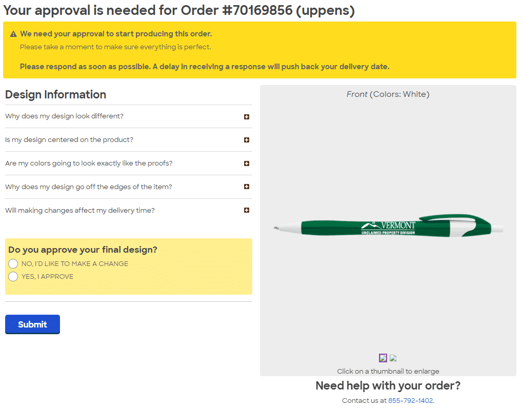 Any blanks changes made to the order 24 hours after the order was placed requires us to restart the clock.