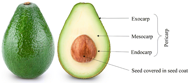 Avocados are a true fleshy fruit called a berry! All three layers of the pericarp are "soft" (enough to cut; the endocarp is a thin layer fused with the mesocarp), and the brown on the pit is the seed coat (the seed inside has white cotyledons and the embryonic root/shoot of the new plant.)