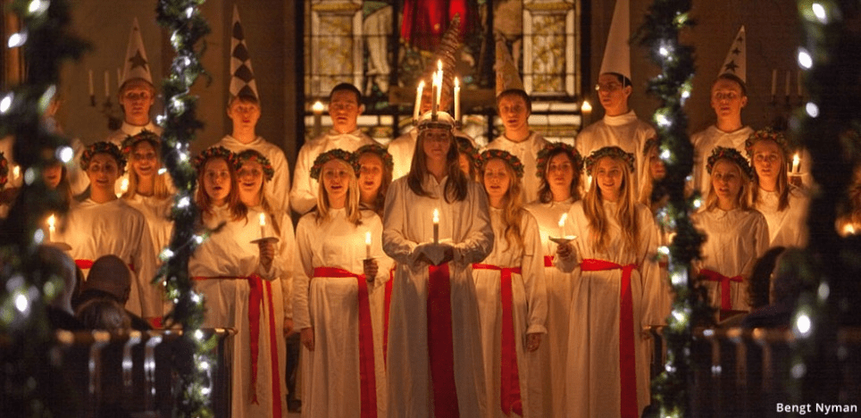 Celebrated on December 13th, this Scandinavian tradition features a girl wearing a crown of candles, symbolizing light in the long winter darkness.