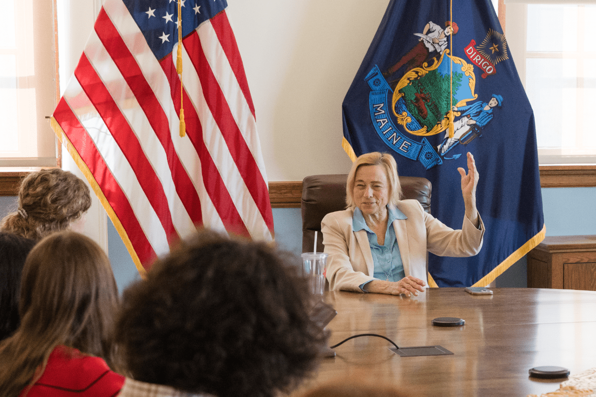 This pragmatic leader is the granddaughter of Aroostook County potato farmers and was the first woman in her state to serve as Attorney General and as her home state's chief executive.