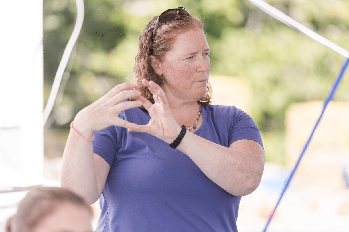 This wild and crazy staffer has climbed to the top of the Morgan without a harness and took the fast route down by burning the backstay.