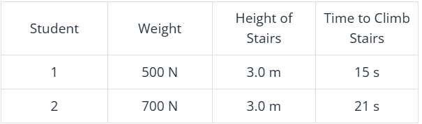 Which student does more work? Who has more power as they climb the stairs?