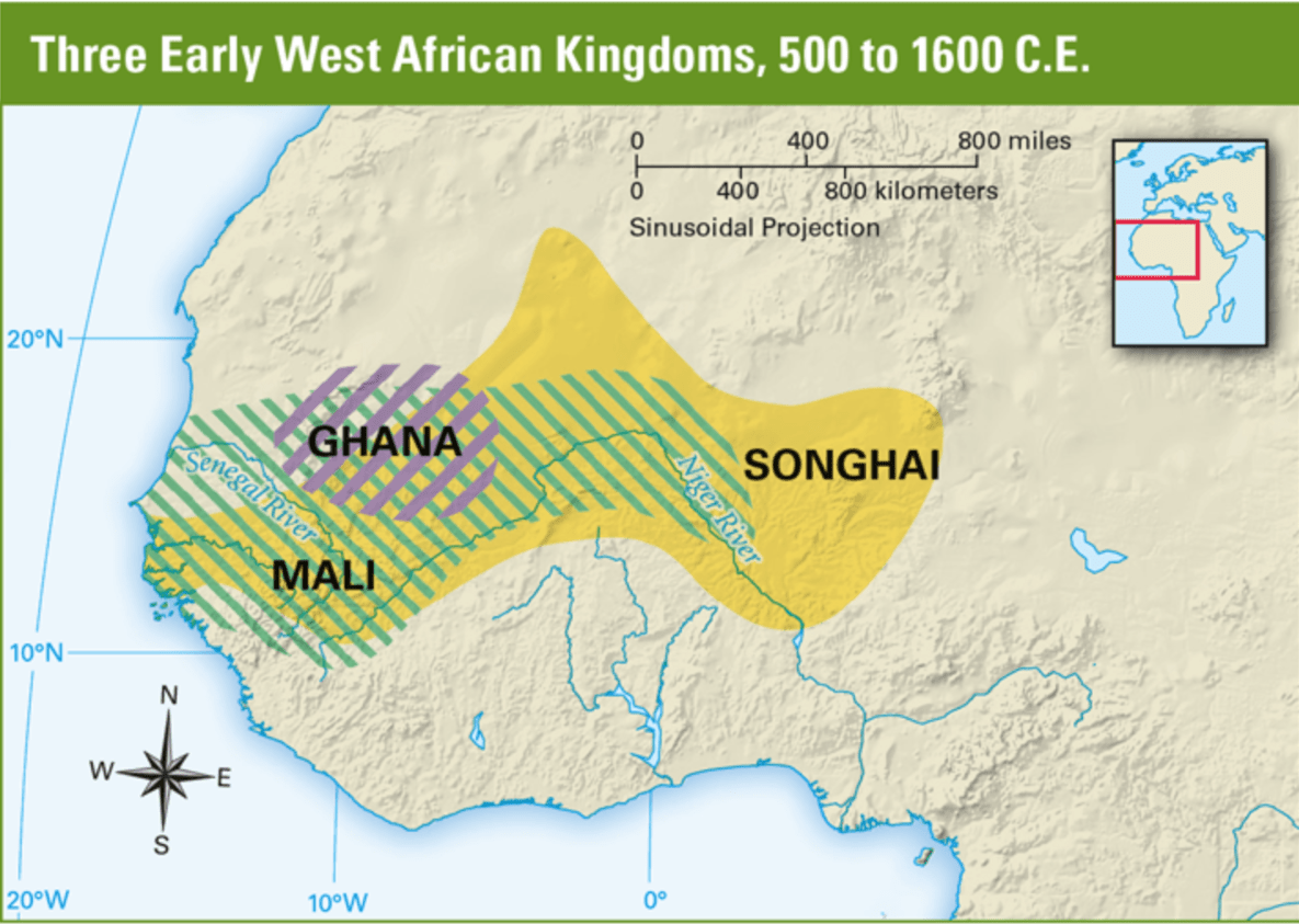Songhai, Mali, and Ghana were among the West African kingdoms. What 2 resources were the most profitable in the regions they occupied?