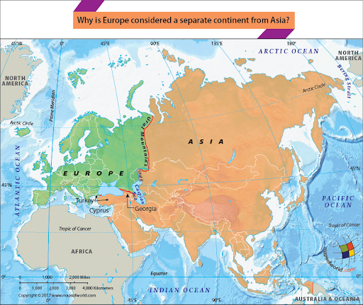 What is the name of the mountain range that forms the geographic boundary between Europe and Asia?