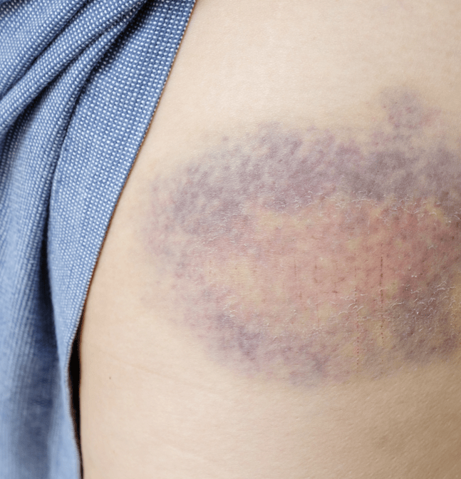 A closed wound, usually caused by a blow from a blunt object. Ecchymosis