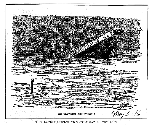 In this 1916 cartoon, the sinking ship represents