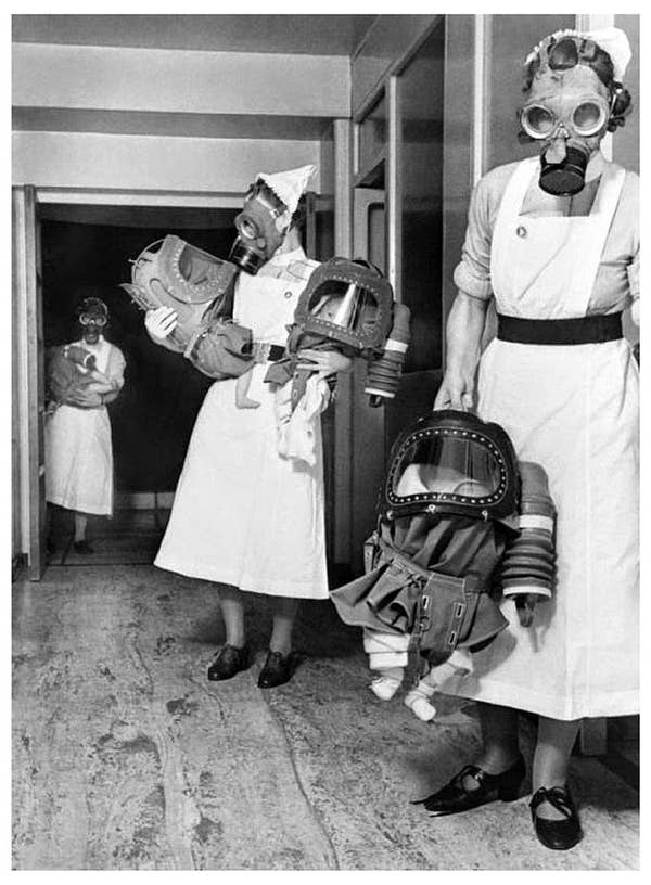 Teise maailmasõja ajal pandi Inglismaal beebidele koomiliselt suured gaasimaskid.
