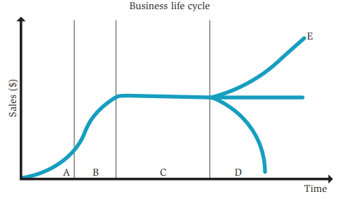 Identify each of the four stages of the business life cycle.