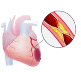 Fat builds up in the artery → blood flow is reduced → the heart has to work harder.