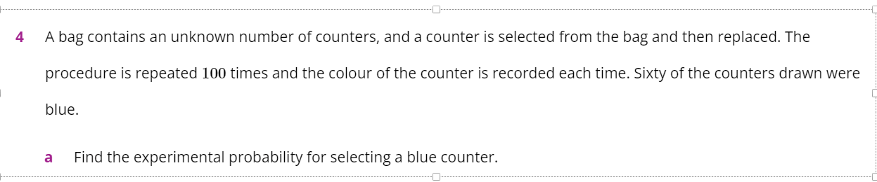 A2-A1 = 22cm2A bag contains 5 blue, 6 green, and 4 yellow marbles. The marbles are identical except for their colour. Two marbles are chosen, one after the other, without the first one being replaced.
