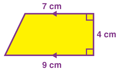 A = 1/2 x (7 + 9) x 4 = 32cm2