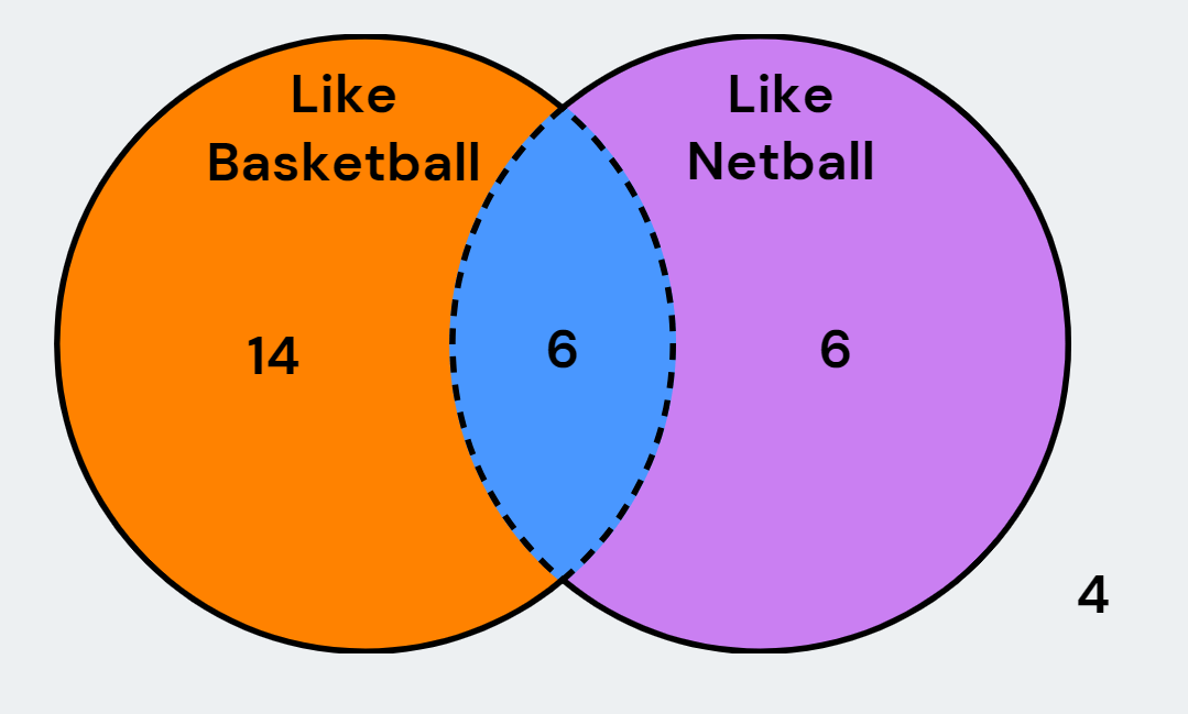 Using the above Venn Diagram, what is the probability that someone does not like both basketball and Netball?