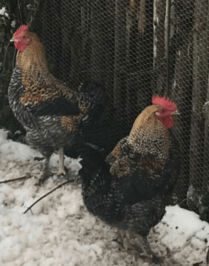 2 smukke haner. Begge er 5 måneder gamle og har været heldige nok til at få en sidste chance på DBA inden de bliver til en lækker gang kylling i carry.