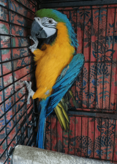 Papegøje, Ara Blå-Gul. Den kan sige: Godmorgen, Hej