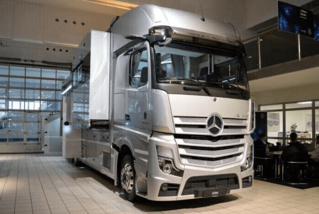 Mercedes Actros. Hestelastbil eller bare et herligt køretøj til en tur til gardersøen. Den står som fabriksny med plads til 5 heste, 6 sovepladser og spa.