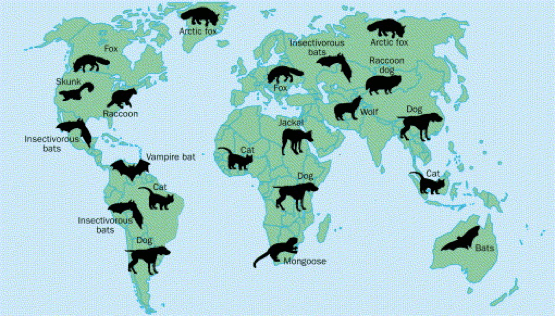 Prior to 1950s, most cases of human rabies in the United States were related to dog bites. Proper use of rabies vaccines in animals has led to a major impact upon the dimunition of human cases in developing and developed countries.