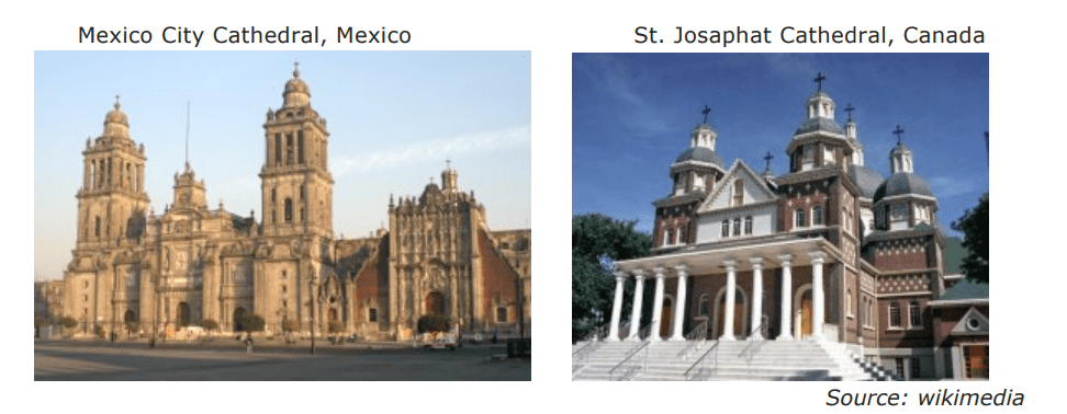The above images of architecture are examples of how Mexico and Canada have been influenced by —