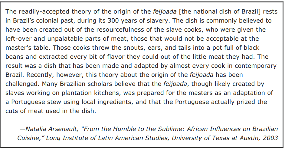 According to the excerpt, feijoada can be considered a modern example of how Brazilian culture was impacted by —