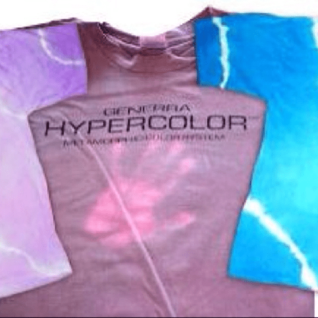 They contained a thermochromic pigment made by Matsui Shikiso Chemical of Japan, which changed between two colors—one when cold, one when warm. The shirts were produced with several color change choices beginning in 1991. The effect could easily be permanently damaged, particularly when the clothing was washed in hotter than recommended water, ironed, bleached, or tumble-dried.