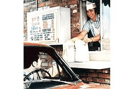 Which fast-food franchise is credited with creating the very first, modern drive-thru window?
