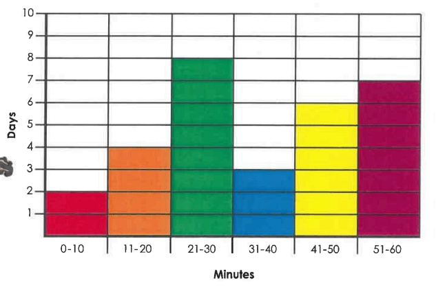 Kira recorded how much time she spent practicing the violin everyday for a month. How many days did she practice for 21-30 minutes?