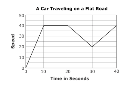 Below is a graph displaying the speed of a car. Which best describes the time the driver applied the brakes to the car?