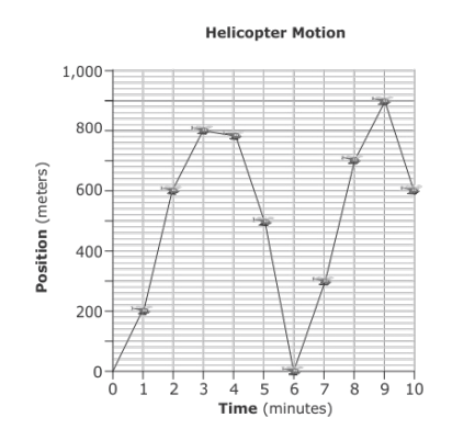 The graph below shows a helicopter's change in position over a ten minutes of time.