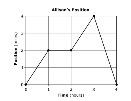 b) Allison traveled faster between hours 0-1 than between hours 3-4.