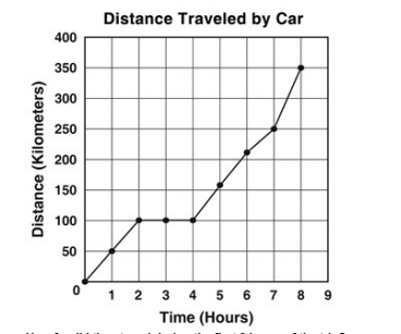 If the car continues to move at a constant speed, what can be predicted of the distance of the car after it has traveled two hours?