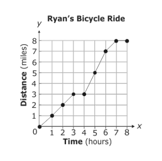 Ryan spends is day riding his bicycle around the city. The graph below shows his motion during the day.