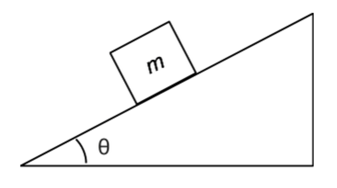 Draw the free body diagram for the following object, m, placed on a frictionless slope.