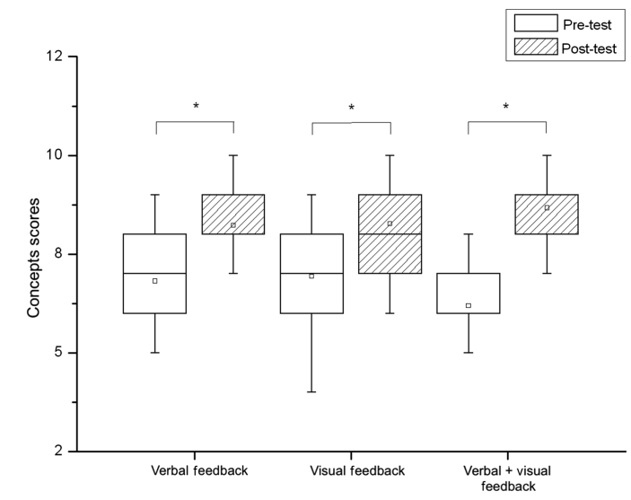 The combination of verbal and visual feedback produces greater improvements in conceptual learning of the aspects to be developed during the reception of the volleyball, higher values in the self-perception of the students about their motor performance, and greater enjoyment, relative to verbal feedback or visual feedback individually.