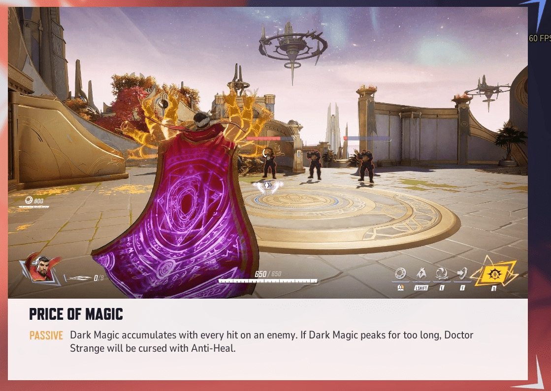 Dark Magic accumulates with every hit on a enemy. If Dark Magic peaks for too long, Doctor Strange will be cursed with Anti-Heal.